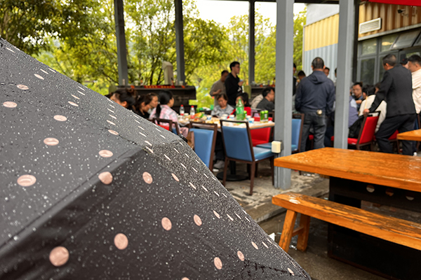同事們圍坐在一起,分享著美食與歡笑。雨水打在樹(shù)葉上,發(fā)出沙沙的聲響,仿佛是大自然的和聲,為我們的聚會(huì)增添了幾分浪漫與詩(shī)意。雨水似乎也被我們的歡樂(lè)感染,輕輕地拍打著地面,仿佛在為我們鼓掌。